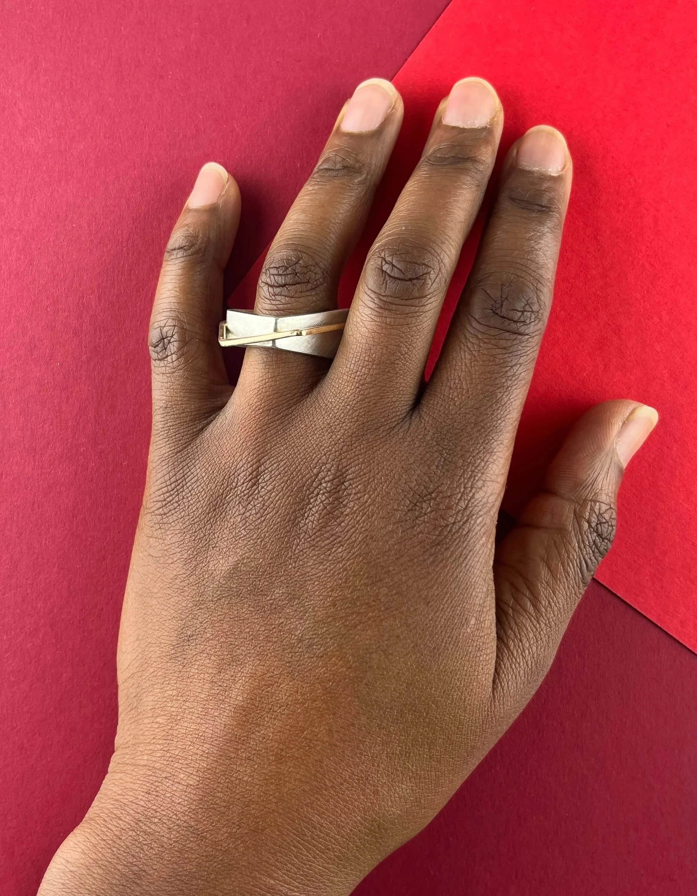 Bring to life the idea of geometric in nature, this wide ring is amazingly comfortable - simply turn it round the finger to find best fit and your favourite position! The wide band looks great worn by every gender and will draw conversation whenever it’s worn.